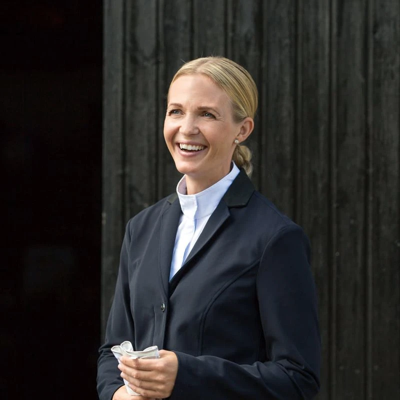 Elegant details and a lightweight fabric give this stunning show jacket its impeccable look and feel. The careful attention to detail and quality workmanship make this jacket special. The soft technical fabric is extremely lightweight and breathable and will look amazing all day long on the showgrounds. A metallic silver-coloured zipper is hidden behind the front buttons for a smooth look and snug fit. The three front buttons hide this zipper while the fit is flattering and comfortable. The front slant pockets and rear vents provide a slimming appearance. The collar is designed for comfort and a crisp look. Turn heads when you turn in your next round wearing this beautiful show jacket.
