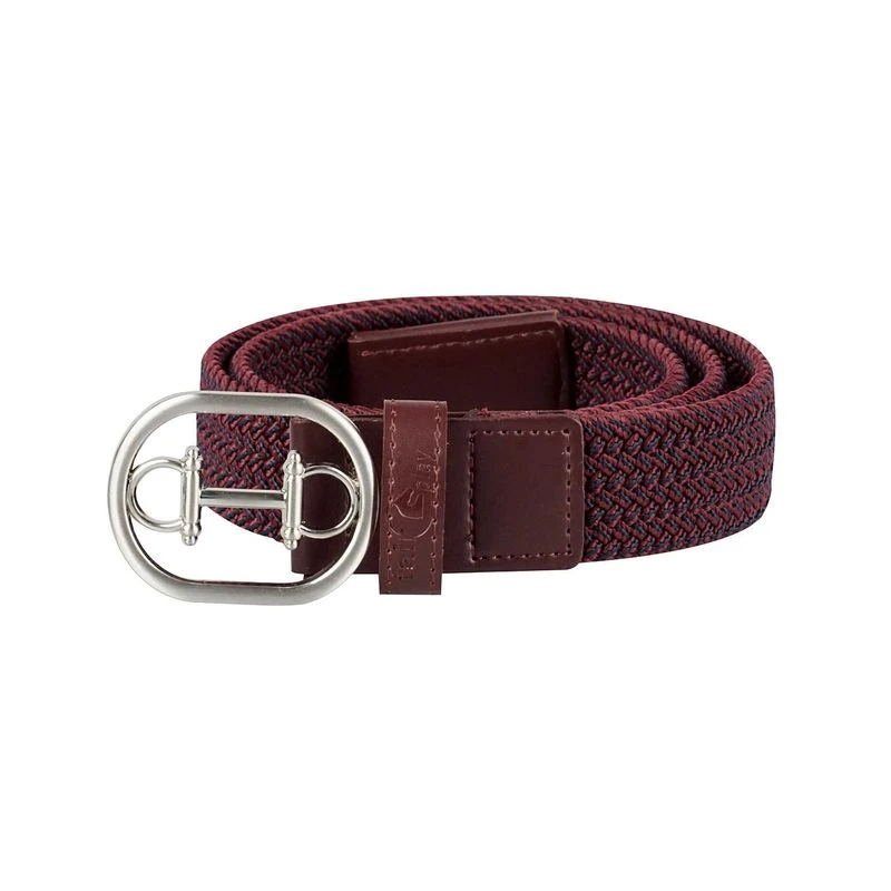 The silvertone buckle has a charming horse bit motif. The the elastic braid has a two tone color effect.
