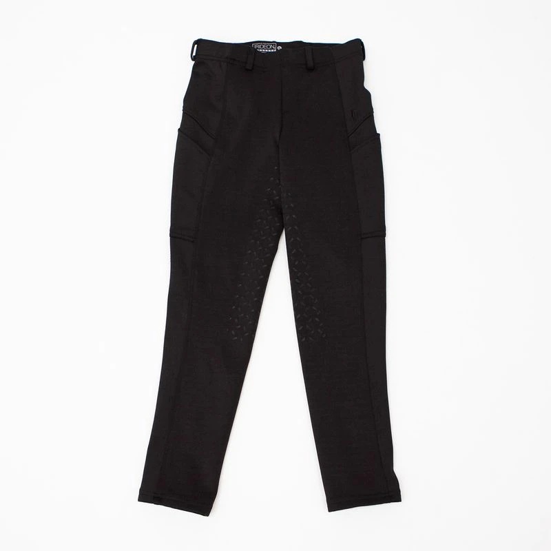 Irideon’s super soft and fleecy, Winterlight Tights will become your young rider’s favorite riding tights of the season. These tights offer the right amount of warmth and help block the wind and cold without overheating. The super-comfortable, ALL-WAY stretch allows unrestricted movement and features thigh pockets that provide storage for pony treats! The Winterlight Tights come with belt loops and our horsehead tread seat for a little extra grip, with a next-to-nothing feel every rider will appreciate.