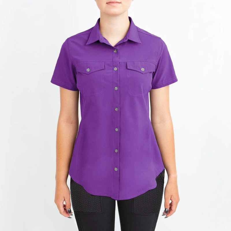 This lightweight short sleeve shirt is made of 4 way stretch fabric paired with IceMesh. It is breathable, moisture wicking, smooth and cool to the touch. The back darts add shape with out being too fitted.