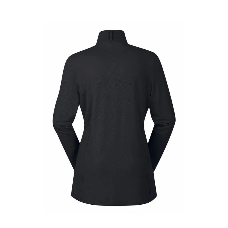 The whisper-light fabric provides UPF+30 sun protection and stretches with every move, while the Ice Fil in this long sleeve shirt keeps riders cool by lowering skins surface temp by up to five degrees. Ten-inch zip collar adds additional ventilation while the sporty, feminine fit, and equestrian hem flatter.